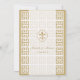 Anuncie seu casamento ou outro evento com elegância ousada com estes convites de Casamento Evento Fleur de Lis Chave Grega Dourado Branco. Um símbolo atemporal de Fleur de Lis branco sobre um fundo branco semi-transparente através do qual o padrão de Chave Grega dourado e branco é apenas visível. Personalize a frente e o verso com suas informações usando o modelo. Clique em personalizar para fazer alterações na fonte e no posicionamento do texto.