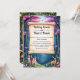 Encantem seus hóspedes com este convite para o casamento de conto de fadas de floresta, apresentando um castelo branco, animais florestais e florais vibrantes. Com uma faixa encantadora e detalhes mágicos, é perfeito para uma celebração romântica de um livro de histórias. ... Voltar ao Convite: O verso fornece todos os detalhes essenciais do casamento, incluindo acomodação, transporte, site de casamento, e RSVP, colocados contra uma mágica fronteira florestal de florais brilhantes, luzes cintilantes, e ferramentas adoráveis, garantindo que seus convidados estejam preparados para se juntar a vocês para seu futuro feliz.