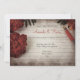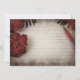 Um convite de casamento rápido, mas elegante, com uma fotografia floral de outono. Papel de carta revestido desbotado e uma caneta sentada em cima com algumas bonito flores vermelhas e folhas verdes colocadas ao redor das bordas.