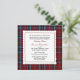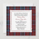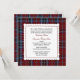 Convite escocês tradicional do casamento do quadrado de xadrez do tartan, feito com os azul-céu e a obscuridade clássicos - tartan vermelho do clã de MacTavish. Uma área de texto branca afiada scalloped decorativa, no meio tem gráficos da costura vermelha em torno da borda. O texto está em vermelho e em preto e é inteiramente customizável serir suas necessidades do casamento. Produtos de harmonização do casamento disponíveis.