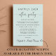 Na moda verde de menta ou anúncio privado de casamento e convite de festas de recepção ou celebração. Na frente, "Felizmente, nunca depois da festa" é escrito em uma mistura de simples tipografia e um roteiro elegante com traços, e você pode personalizar sua mensagem e convite com mais detalhes e adicionar seus nomes em um roteiro semelhante a assinatura. O verso mostra seus nomes e datas de casamento e recepção.