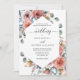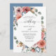 Convites Casamento Feliz Floral Dusty Azul e Blush