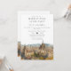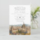 Este convite de casamento de fuga romântica em Barcelona com ilustração em aquarela pode ser personalizado com as suas informações em tipografia sofisticada. Concebido por Thisisnotme©