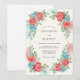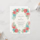 Um delicado design em aquarela apresenta rosas corais entrelaçadas com flores azuladas suaves e folhas verdes exuberantes. O estilo arejado e pictórico evoca uma atmosfera romântica e caprichosa, perfeita para uma ocasião de primavera ou verão.