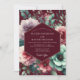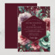 Uma rica tapeçaria de flores de ameixa profunda e rosa suave cria uma atmosfera dramática e romântica. Folhagem exuberante em tons de azul-verde complementares adiciona profundidade e textura. Este design evoca uma elegância sofisticada e sombria perfeita para uma celebração de outono ou inverno.