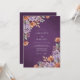 Este design romântico apresenta um rico fundo de ameixa acentuado com flores pintadas em tons de coral e lavanda suave. Folhagens delicadas adicionam profundidade, criando um clima caprichoso e etéreo. Uma escolha perfeita para uma celebração sofisticada e artística.