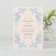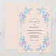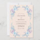 Delicadas flores em aquarela em tons de pervinca e azul suave criam uma aura aérea e romântica. Um verde exuberante em cascata emoldura o design central com uma elegância suave. Este design evoca um clima sereno e etéreo, perfeito para uma união de primavera ou verão.