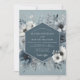 Experimente uma estética serena e elegante com este deslumbrante design artístico. Uma bela disposição de anêmonas brancas pintadas, rosas azuis profundas e folhagens delicadas cria uma exibição floral sofisticada. A paleta monocromática fria de azul aço e marfim evoca uma sensação de romance tranquilo.