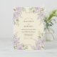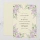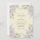 Flores delicadas em tons suaves de lavanda em aquarela caem em cascata sobre um fundo pálido e cremoso. Folhagem verde exuberante adiciona profundidade e um toque da beleza da natureza. Este design evoca uma atmosfera suave e romântica, perfeita para uma união na primavera ou verão.