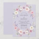 Um fundo roxo suave proporciona um cenário sereno para uma disposição de flores em aquarela. Ramalhetes de lavanda suave e rosas cor-de-rosa pastel criam uma estética romântica em todo o design. Folhas elegantes de eucalipto e verde-sage se entrelaçam pelos elementos botânicos para um toque caprichoso. Esta obra de arte captura a essência de um prado de primavera tranquilo.