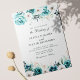 Um convite de casamento de flor silvestre em tons refinados de azul-turquesa, apresentando flores em aquarela e detalhes botânicos delicados em um fundo branco suave. Este elegante design floral boêmio combina tipografia atemporal com um layout moderno, perfeito para casamentos românticos em jardins ou no verão.