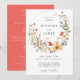 Este design elegante apresenta uma delicada grinalda de flores silvestres rústicas em aquarela. Perfeito para casamentos caprichosos de primavera e verão.