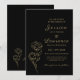 Elevem seu casamento com este convite minimalista, moderno, elegante, preto e ouro, com sotaques florais elegantes de rosa. Com um pano de fundo preto e destaques de ouro elegantes, esta design exude o charme do eterno, perfeito para uma celebração chica e romântica. Personalize por um toque único no seu dia especial.