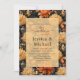 Este convite de casamento impressionante apresenta um dramático fundo negro adornado com flores de ouro amarelo e laranja queimadas, criando um elegante design de inspiração de outono. Os tons quentes de outono, aliados a roteiros refinados e fontes serif, destacam lindamente os nomes do casal, enquanto a borda floral adiciona riqueza e sofisticação. Perfeito para casamentos outono, comemorações noturnas, ou casais que adoram artigos ousados e elegantes. Totalmente personalizável com seus detalhes de casamento.