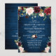 Convites Casamento Floral Aquarela Azul Naval Borgonha