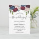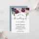 Convites de casamento florais em aquarela elegantes e sofisticados com lindas flores rústicas campestres em rosa velho, burgundy e azul-marinho. O verso do cartão é em azul poeirento moderno. Adicione facilmente os detalhes personalizados do seu casamento.