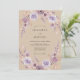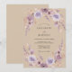 Este design apresenta uma delicada e arejada disposição floral em tons suaves de lavanda e rosa desbotado. Elementos botânicos sutis e um efeito de aquarela romântica criam uma atmosfera sonhadora e etérea. Perfeito para uma celebração de primavera ou verão.