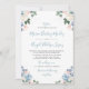 Este design apresenta uma adorável queda de aquarela com um fundo azul claro. A frieza da cor azul adiciona elegância enquanto as flores proporcionam uma incrível procura por um evento ao ar livre. Este design é excelente para o casamento de primavera e verão. Você pode mudar as cores e o texto para corresponder ao seu próprio tema de casamento.