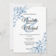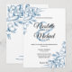 Este clássico convite de casamento azul floral é perfeito para um casamento de primavera ou verão. Apresentando flores de cereja desenhadas à mão, botões e galhos em azul escuro contra fundo branco. O roteiro de caligrafia elegante destaca os nomes da noiva e do noivo e é balanceado por tipografia limpa e moderna durante o resto do convite.