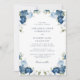 Adicione facilmente seus detalhes de casamento a este lindo e elegante modelo floral azul clicando no botão "Personalizar". Apresentando azul moderno e azul-bebê floral com folhagem verde e tipografia popular. Altere completamente o plano de fundo deste convite clicando no botão "Personalizar".