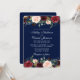 Convite para Casamento Floral Azul e Borgonha de Aquarela Elegante
