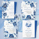 Chinoiserie floral azul e convite para o casamento na fronteira tripla com iniciais. Imagine uma cascata de flores azuis no seu convite para o casamento, inspirada pela clássica Chinoiserie e pintura de porcelana de lavagem de tinta. O cobalto profundo e cheio de alma indigo misturam-se com realces brancos brilhantes, criando uma profundidade e dimensão cativantes. Uma delicada fronteira tripla em azul claro completa a design, definindo perfeitamente seus detalhes de casamento dentro dessa composição elegante e harmoniosa.