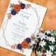 Convites Casamento Floral Azul de Marinho Laranja de Outono