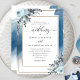 Convite de casamento elegante com mancha azul de cor d'água, buquês de esquina refinados e quadros de ouro cobrindo seus detalhes de casamento. Flores aquosas pintadas à mão e folhagem em azul, marinho, branco, sábio, cinza e caramelo empoeirado. Traseira do cartão com a mesma mancha de aquarela azul delicada e folhada. Parte do nosso casamento e da coleção de eventos "Rustic Blue Mountain" com uma variedade de produtos coordenadores disponíveis. Visite a coleção inteira em: https://www.zazzle.com/collections/rustic_blue_mountains_wedding_and_event_collection-119893780903977429