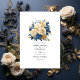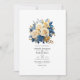 Convite de casamento floral azul e dourado. Ideal para qualquer tema ou casamento de jardim. O código QR no verso direciona para o seu local de casamento onde o pessoas pode aprender mais e rsvp