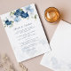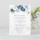 Personalize este convite de casamento clicando no botão "Personalizar" acima. A carta apresenta um moderno e elegante chic com flores azuis empoeiradas, de cor branca, azul claro e verde-oliva. TIP: Excelente para festas surpresa, chás de fraldas, recepções de casamento e festas de aposentadoria.