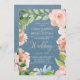 Convites Casamento floral, azul e laranja, poeirento, prima