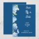 Anuncie seu dia especial em estilo com este belo cartão de casamento "Salve a Data". Apresentando delicadas flores azuis da hydrangea e um roteiro elegante em um fundo azul macio, este convite dá um tom romântico para o seu casamento de outubro. O cartão destaca a data do casamento (domingo, 12) e a hora (18 horas), fazer tanto de olho quanto informativo. Perfeito para casais que procuram uma mistura de beleza e simplicidade em suas estórias de casamento.