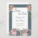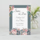 Este é um elegante casamento floral azul e rosa empoeirado Salve o convite de Data com lindas flores de aquarela. Esta design é perfeita para uma festa de verão, primavera ou casamento de jardim.