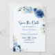 Convites Casamento Floral Azul Elegante Salvar a Data