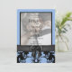 A caligrafia de casamento floral azul elegante salva a data do convite para o cartão com fotos tradicional. Veja o resto do casamento elegante e da coleção de decorações.