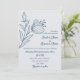 Convite de casamento simples único com flores azuis românticas e elegantes e poeirentas em fundo azul claro PARA MAIS PRODUTOS CORRESPONDENTES clique na coleção acima ou entre em contato comigo.