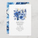 Convite de casamento azul escuro. Ideal para um casamento no jardim. O código QR no verso direciona para o seu local de casamento onde o pessoas pode aprender mais e rsvp