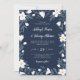 Belo convite para o casamento floral com flores brancas em azul marinho. Convite de casamento floral branco e azul-marinho com a menção tradicional em branco. O convite tradicional para o casamento floral com flores brancas e azul ardente.