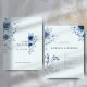 Faça seu dia especial inesquecível com este clássico convite de casamento floral azul. Apresentando elegantes flores aquáticas em tons marinhos macios e azuis empoeirados, esta design é perfeita para casamentos modernos, românticos ou com temas jardins. O layout é limpo e minimalista, deixando seus detalhes brilharem em uma apresentação de eterno. Ideal para primavera, verão, ou casamentos no inverno, este convite combina com casais que buscam uma vibração sofisticada e serena. Totalmente personalizável — personalize nomes, locais e data com facilidade diretamente no Zazzle.