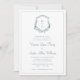 Convite para Casamento Floral Azul Monograma. Este convite romântico e na moda apresenta lindas flores azuis poeirentas pintadas manualmente em uma crista | coroa com o monograma da noiva e do noivo. A parte traseira do convite inclui um padrão de capricho, mas pode ser facilmente apagada se preferir. Localize itens correspondentes na Coleção de Crest Monograma Azul Dusty.