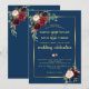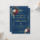 Convites Casamento Floral Azul Naval Dourado Bordô