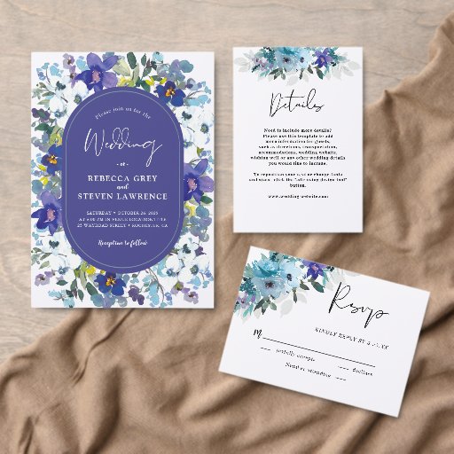 Convites Casamento floral azul roxo, primavera empoeirado E