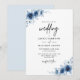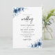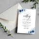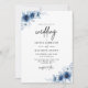 Convites Casamento Floral Azul-Vintage, Francês Elegante