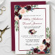 Elegante Watercolor Burgundy Marsala e Convite Floral Azul - Borgonha