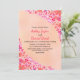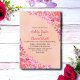 Este elegante convite de casamento floral é perfeito para um casamento floral de verão moderno. A design romântica apresenta uma coroa esbranquiçada, coroa floreal, com elegante tipografia preta, sobre um fundo cor-de-rosa pincelado.