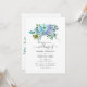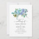 Convite de casamento de pavão de bolinho azul com tipografia elegante.