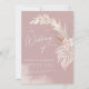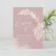 Um design moderno em boho pampas, floral boêmico com um roteiro de caligrafia fino sobre fundo rosa. Personalize facilmente suas informações pessoais para criar um convite de casamento incrível.