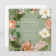 A menta suave tocou em fundo verde sábio com texto branco e um convite em formato quadrado (você pode mudar ambas as opções) para um casamento moderno com toques de eterno. Audrey Jeanne Roberts projetou esta elegante coroa de ilustrações botânicas antigas de flores e folhagem de folhas. Em cores de rosa de pincel e marfim, clematis e peônias florais com samambaias selvagens e coletas de folhas. Direitos autorais.