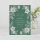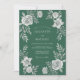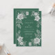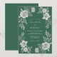 Ilustrações florais brancas delicadas adornam este fundo esmeralda profundo, evocando um clima clássico e romântico. Rosas exuberantes e lírios são intercalados com folhagens, criando um design elegante e atemporal para uma ocasião especial. A obra de arte monocromática adiciona um toque sofisticado à estética geral.