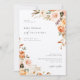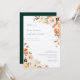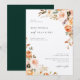 Arranjos florais de outono botânicos terrosos, convite de casamento. Modelo de estilo de design de tipografia simples e moderno. Parte de trás do cartão apresenta cor verde esmeralda sólida coordenada.